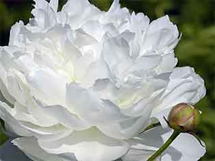 Махровый корончатый - полушаровидный. Средне-позднего срока цветения. Высота 90 см. Стебли изгибаются. Цветок огромный, диаметром 20 см, плотный. Наружные лепестки жемчужно-розовые, внутренние складчатые, более бледного тона, образуют шапочку. Выгорает до кремово-белого. Аромат тонкий. Листья очень крупные.
