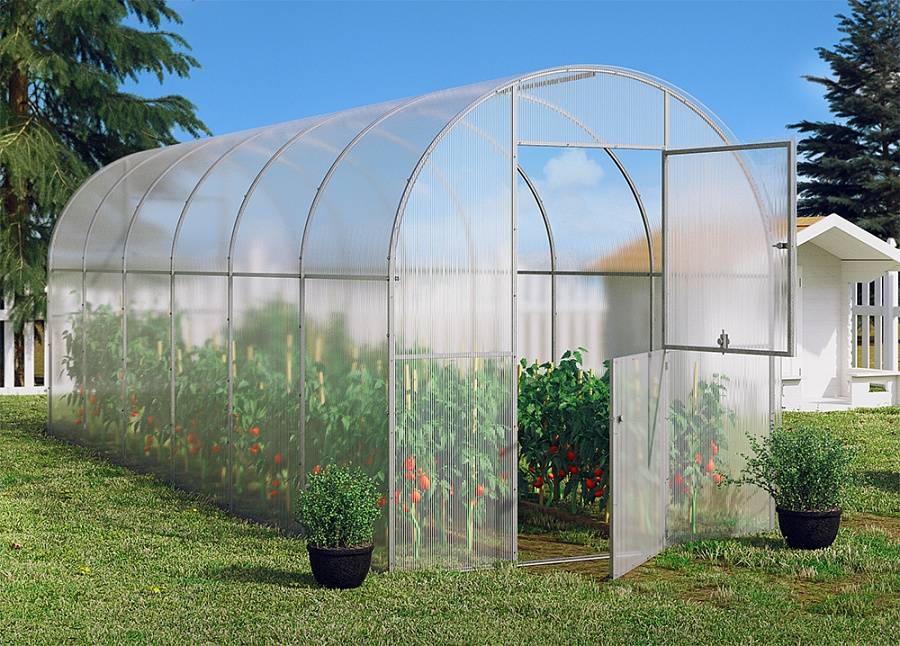 Высокопрочная теплица Йота Оцинкованная труба 20х20. Две двери,
